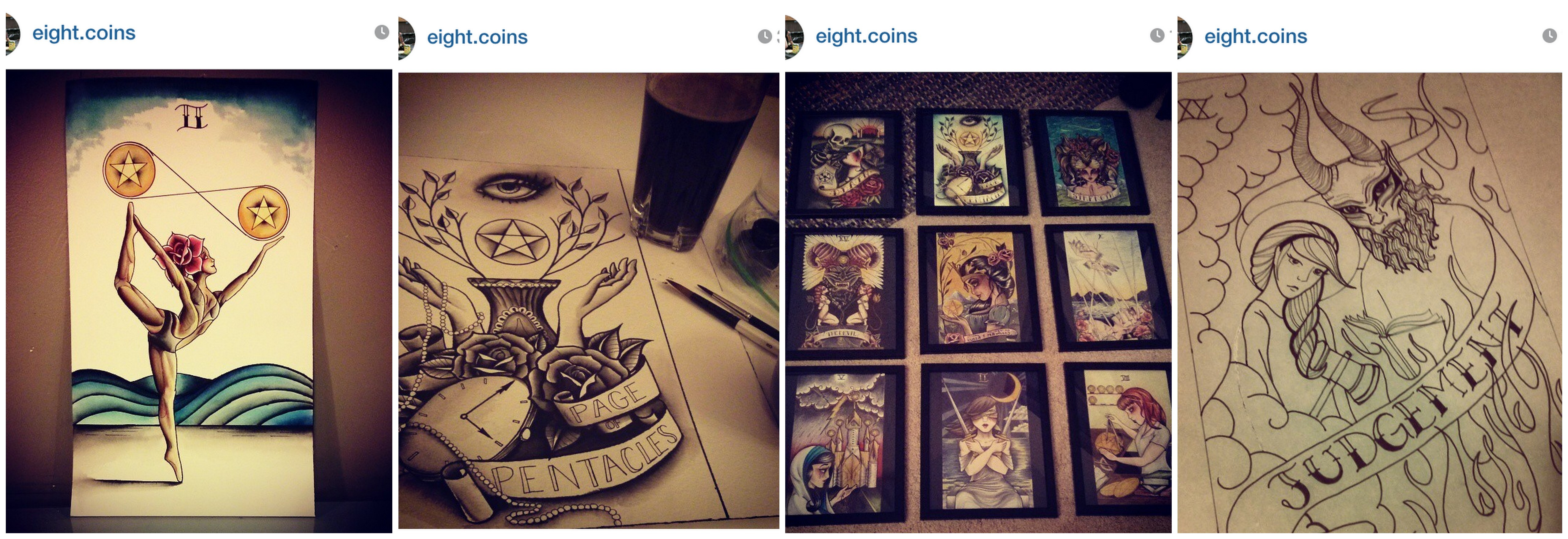 Instagram is full of amazing artists and quite a few of them are taking on the task of creating Tarot decks. Most of them are